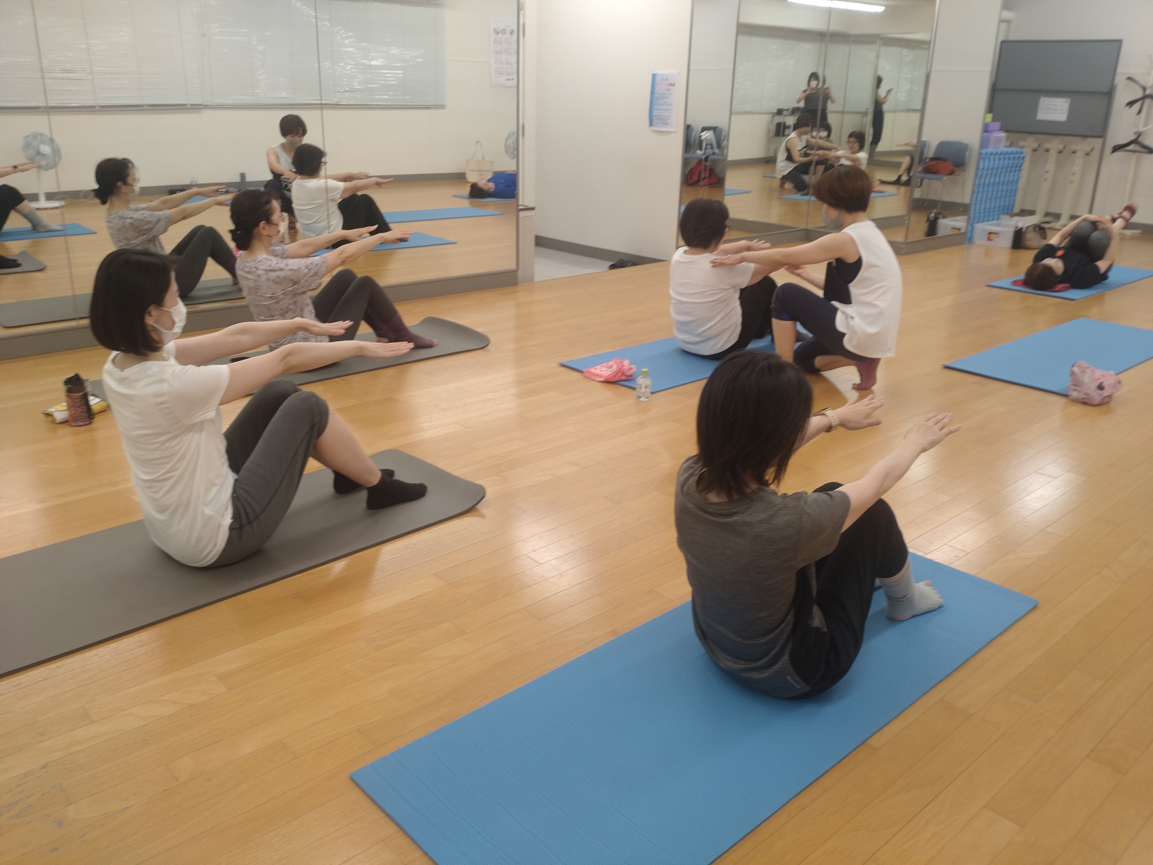 マットピラティスを中心に、必要に応じたプロップス(ボール、バンド、ピラティスリング、フォームローラー、スパインコレクター等)も利用した多角的なアプローチでプログラムを提供します。